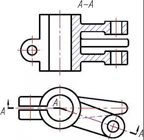 在不致引起误解时,允许将斜剖视图旋转,让主要轮廓或轴线摆正画出,此时在剖视图上方要注明相同的大写字母“A-A”,同时标注旋转方向。